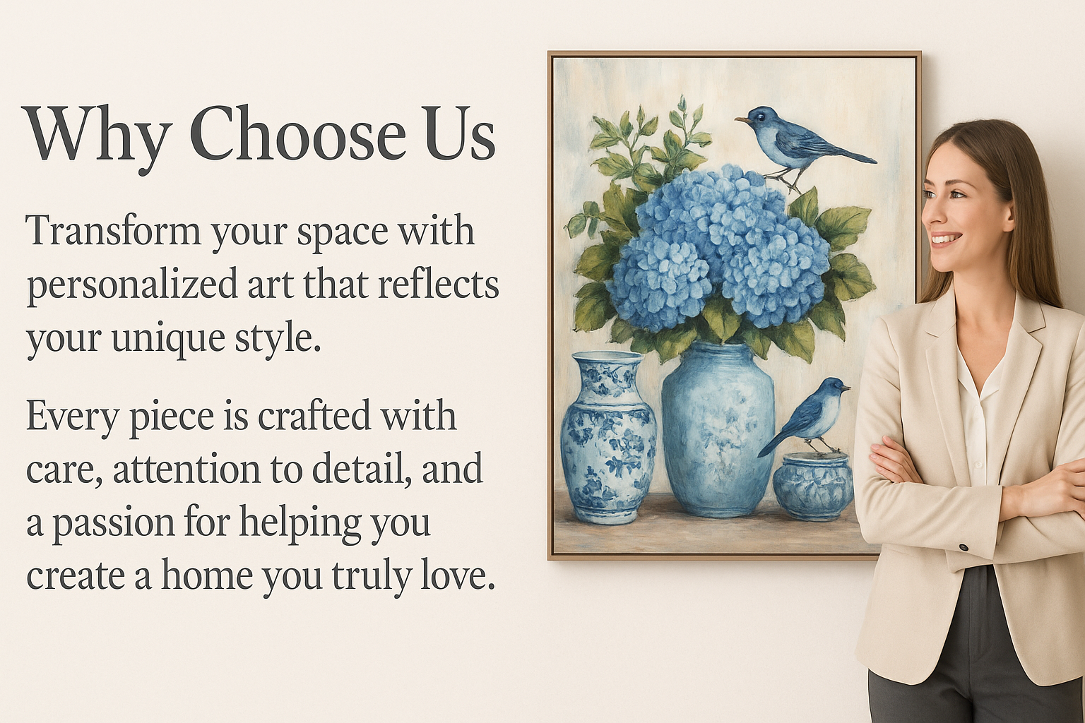 We don’t just create art—we create pieces that speak to your life, your style, and your story. Every artwork is crafted with intention, precision, and a genuine passion for beauty.