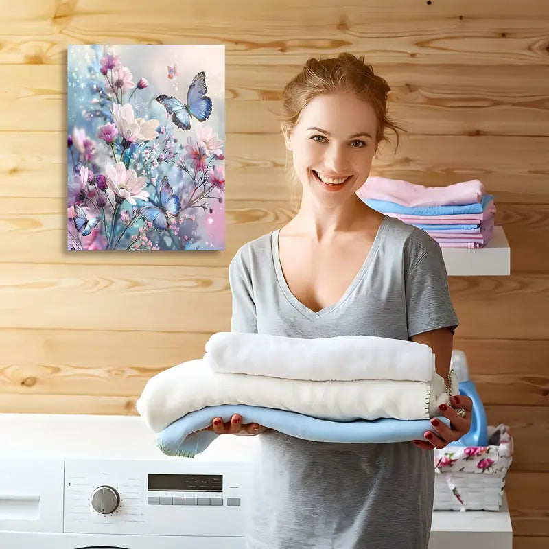 Featuring a stunning blend of vibrant florals and butterflies, this canvas wall art adds a touch of elegance to any living room, bedroom, or home office. The wrapped wood frame ensures durability and is perfect for gifting on housewarmings, bridal showers, or birthdays. Transform any room with this 2D flat painting that serves as the perfect decor piece.