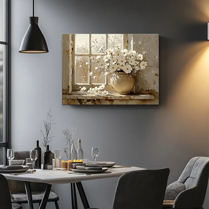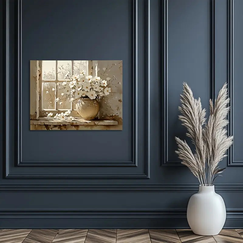 This piece of canvas art is a beautiful addition to any living room or study. It features a vintage aesthetic with its rustic wooden frame, shabby windowpane, and textured wall background. It's the perfect gift for Thanksgiving or Christmas, adding a warm and welcoming touch to any home decor. Measuring at 12x16 inches, it's sure to make a statement in any space.
